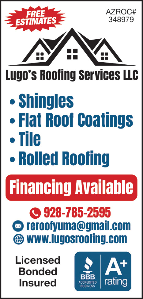 Feb 04, 2026. Lugo's Roofing Services LLC Roofing Ads from Yuma Sun Services