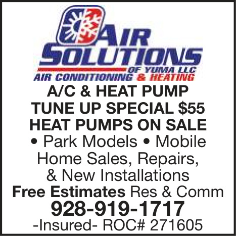 Apr 17, 2026. Air Solutions of Yuma LLC Heating/Air Conditioning Ads from Yuma Sun Services
