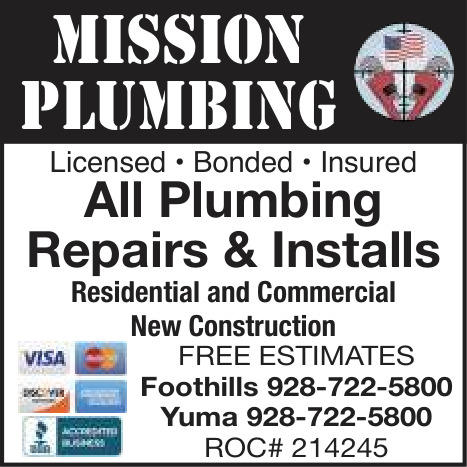 Apr 17, 2026. Mission Plumbing Plumbing Ads from Yuma Sun Services